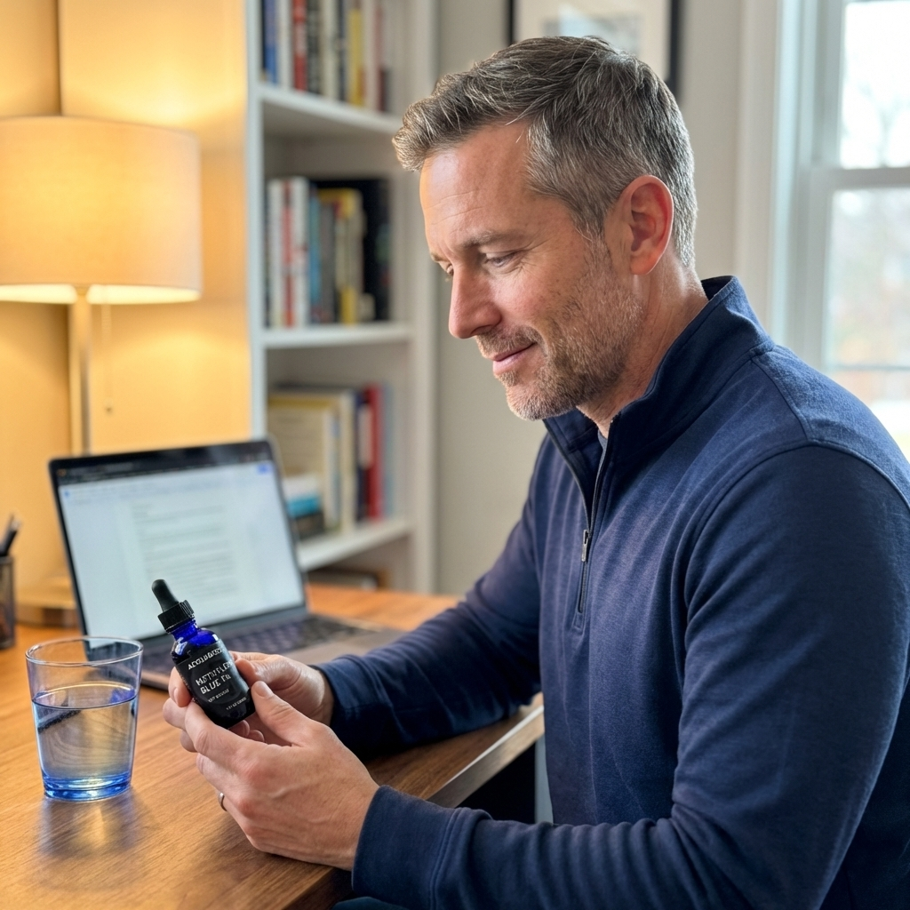 I was drinking 5-6 cups of coffee every day just to stay focused at work, and I'd still crash hard around 2-3pm. Started taking AccuaBoost about a week ago after a friend recommended it, and I'm down to just one morning coffee now and have steady energy all day. No more afternoon brain fog, no more needing that 3pm $7 latte to finish my work. The mental clarity is real I'm getting through tasks faster and making fewer mistakes. Yeah, the blue tongue thing is weird at first, but honestly who cares when you feel this good? My wife even commented that I'm not exhausted when I get home anymore. Totally worth it.
